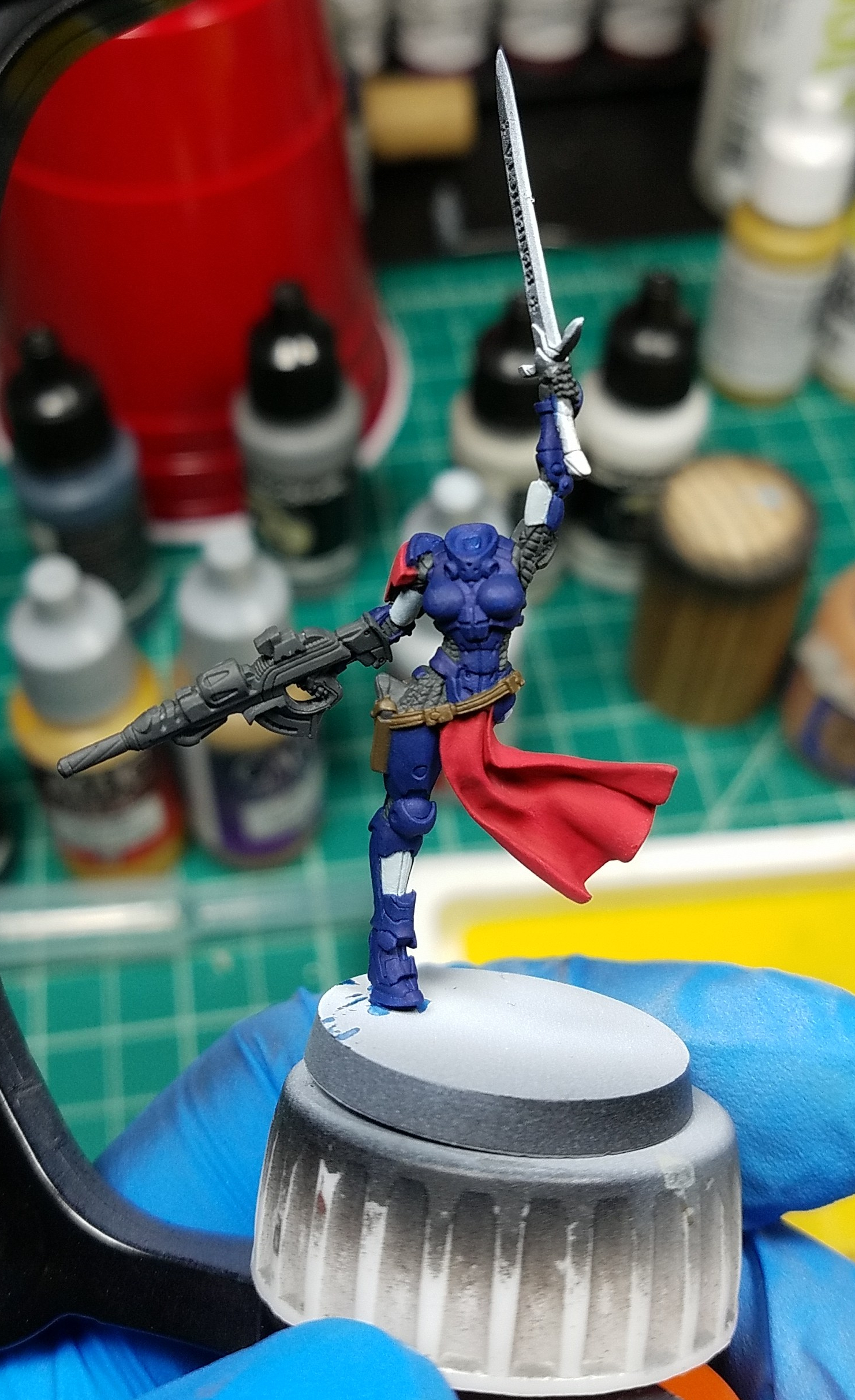 It took me a long time to even start the process of laying down these base coats. The reason being was that I was afraid, I wasn’t really confident I could pull this off so procrastinated a lot. Doing tests on a spare Joan model helped me develop a plan and boosted my confidence because it allowed me to test colors without having to worry about messing everything up.