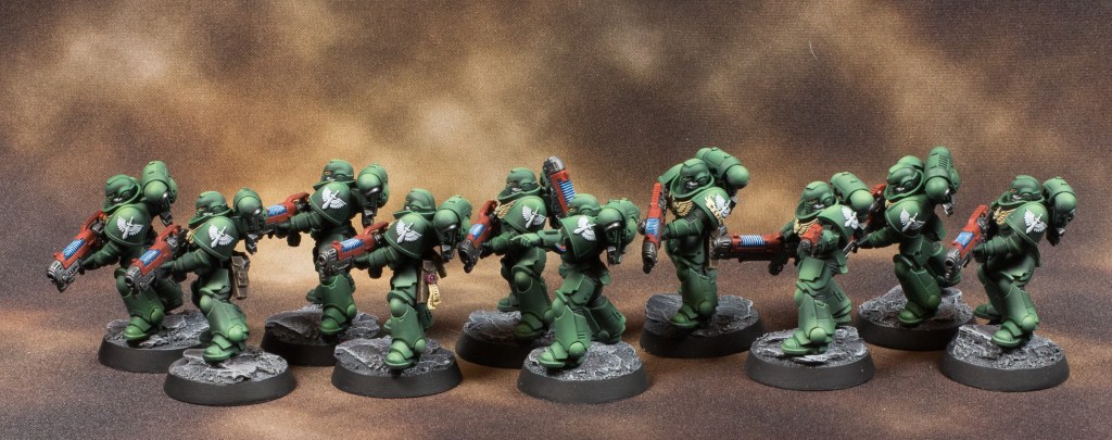 I don’t have too much to say because the paint scheme is that same as my intercessors with the plasma being done in a fashion similar to my Inceptors. However, I will say that I did not really enjoy finishing them at all. It was a real slog to get them done and I think that is because my reason for doing them was to get them off my work table and free up space. I wasn’t painting them because I planned on fielding them as part of my army, or to try a new paint scheme, or do a new technique…they were just taking up space and I found it annoying. So unsurprisingly my heart just wasn’t in it and thus there were a few mistakes done along the way