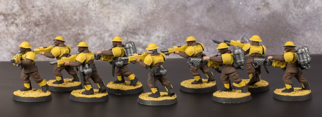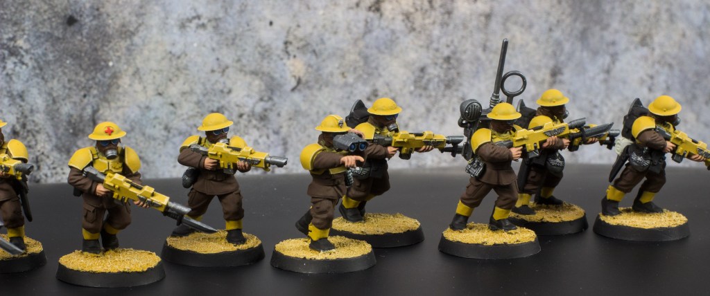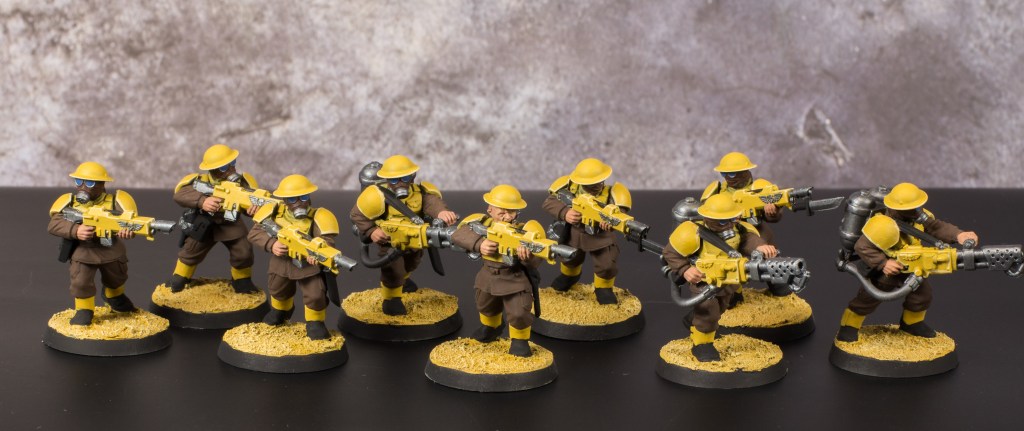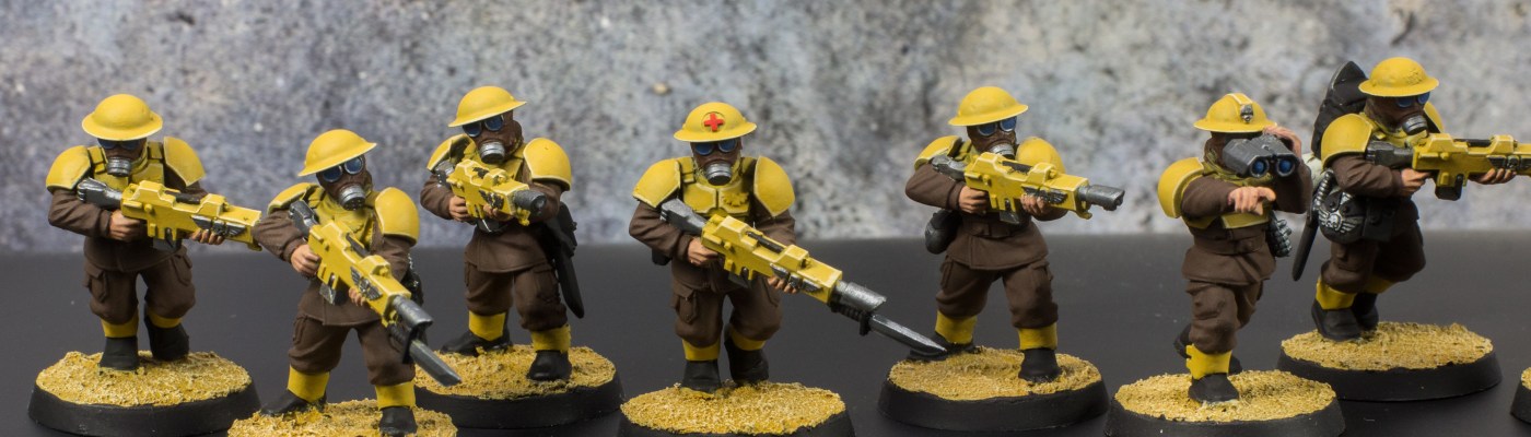 With these two squads finished that means that all the infantry models are now complete. That’s right, I was able to paint up 42 individual infantry models and it only took me six months to do it. All that’s left for the army are the four Leman Russ battle tanks and the four heavy weapon squads. And at the time of writing this those models are already based, primed and zenithally highlighted so things are looking good.