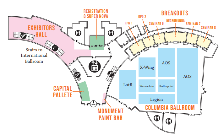 After lunch my wife and I had a ton of free time so we decided to properly explore the vendor hall. The vendor hall this time around was in a long hallway area that also housed the registration (see map above provided by Nova Open) so there were vendors on either side with a walkway running down the middle. The first thing I noticed is that there were more vendors this year than I had ever seen before at the convention. There were the usual suspects of Toledo Game, Death Ray Design and Atlantis Games but there several new faces like Arena Rex, Baron of Dice, The Griffon’s Lair and Your Hobby place which meant there was more variety than ever before. For me the standout winner was Arena Rex; I never got a chance to demo the game but they minis they made for it were simply superb and I ended up getting four different models from their range before the con was over.